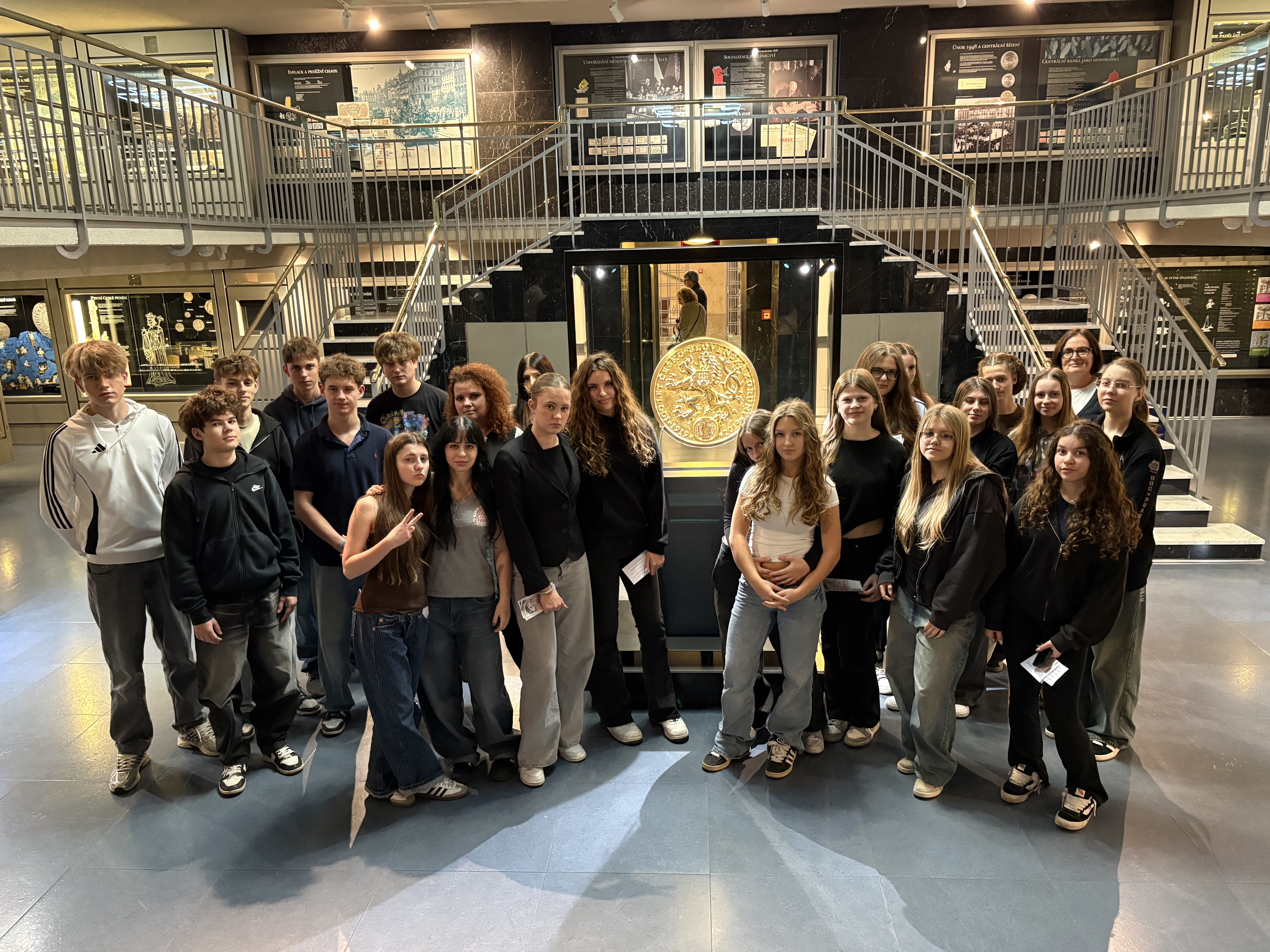 Dne 14.11.2025 se třída 1.C účastnila programu ČNB Lidé a peníze. Program byl zaměřen na historii peněz, seznámil žáky s ochrannými prvky bankovek, největší českou zlatou mincí, ale i s jednotlivými, dříve používanými, bezpečnostními schránkami.