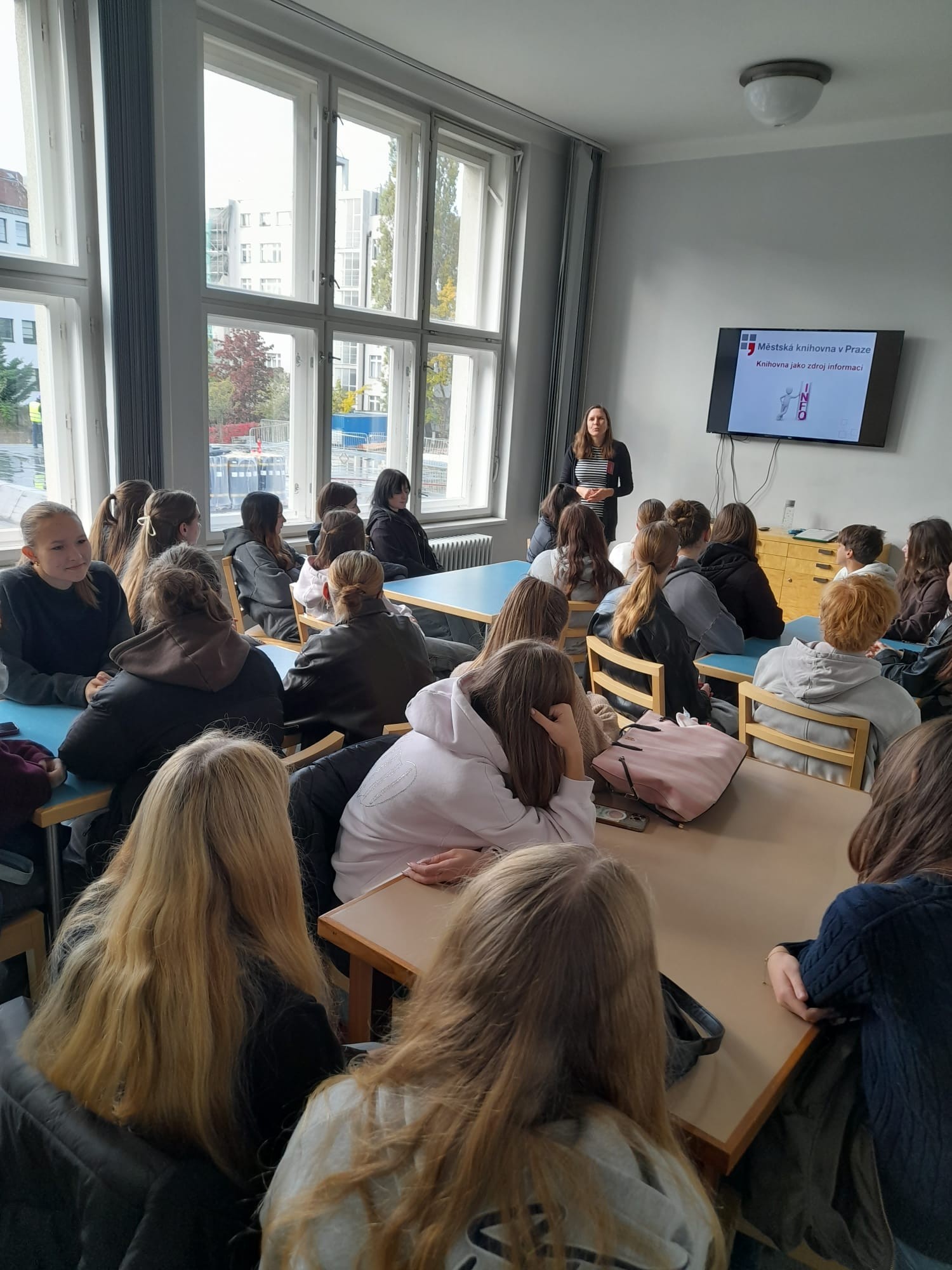 Žáci prvního ročníku v rámci českého jazyka a literatury navštívili Městskou knihovnu v Korunní ulici. V knihovně od lektorky získaly základní informace o provozu knihoven v ČR a následný workshop studenty rovněž zaujal.