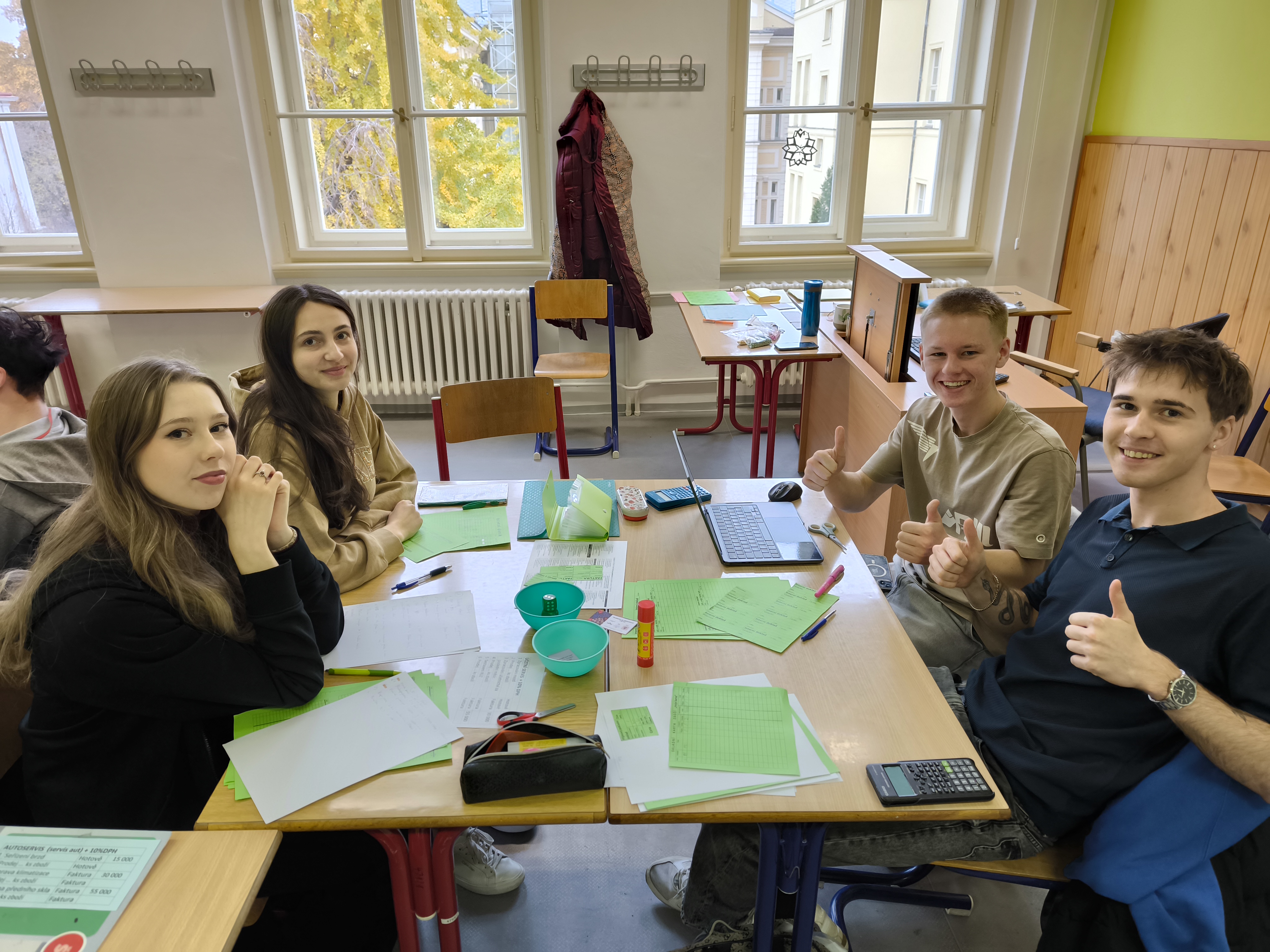Ve čtvrtek 20. listopadu 2025 se žáci 3.E zúčastnili účetní deskové hry na Karlínské obchodní akademii. Měli možnost si hravou formou zopakovat teoretické znalosti z hodin účetnictví a také si vyzkoušet, na co všechno je třeba si dávat pozor při účtování v praxi.